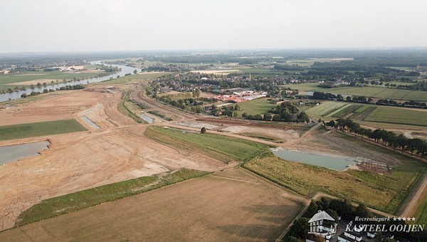Vorig jaar is de aannemer “Mooder Maas” namens Provincie Limburg gestart met de Gebiedsontwikkeling Ooijen-Wanssum en ons recreatiepark ligt midden in dat gebied. In de omgeving is al te zien dat men de oude Maasarm aan het uitgraven is en een brug aan het bouwen is voor over de oude Maasarm. Sinds kort is Mooder Maas ook volop aan het graven achter de camping, zoals je op de foto kunt zien. Uiteindelijk zal daar de Hoogwatergeul komen en een deel van de camping zal als terrassen worden aangelegd. Daar worden kampeerplaatsen gecreëerd met uitzicht op de Maas. Naast de camping komt een jachthaven met 30 drijvende recreatiewoningen en aanlegplaatsen voor boten. We houden jullie op de hoogte van alle werkzaamheden!